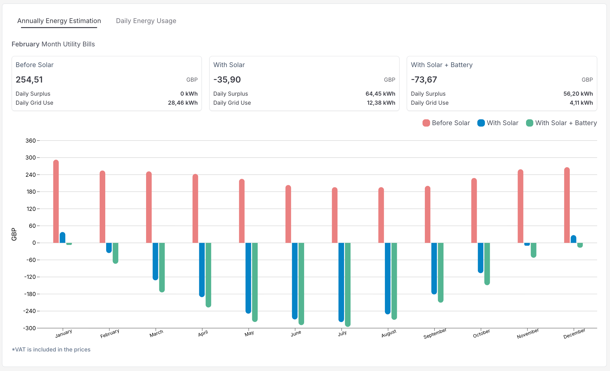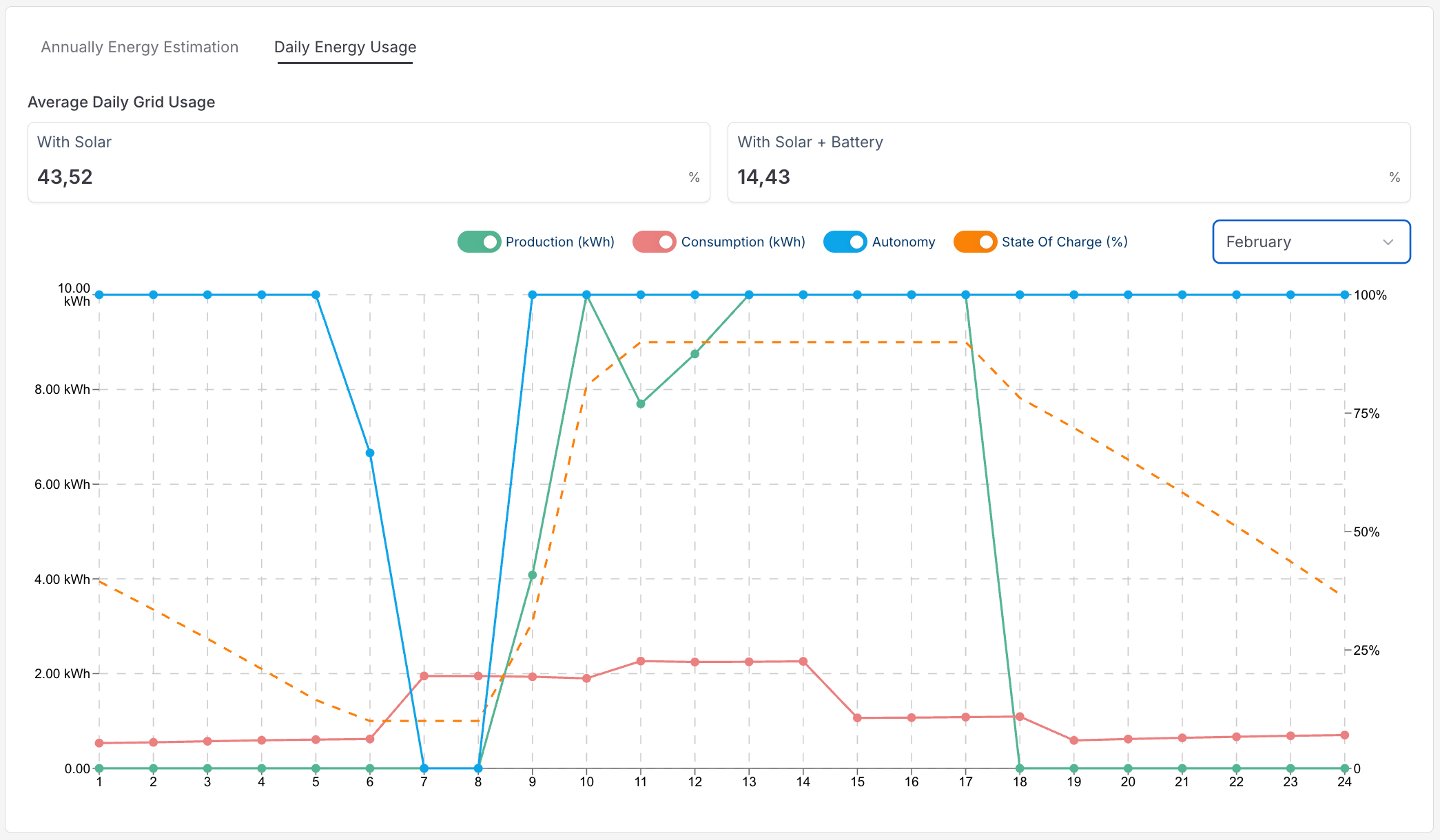 Mit dem Monatswähler können Sie sehen, wie sich das tägliche Energieverhalten in verschiedenen Jahreszeiten verändert.